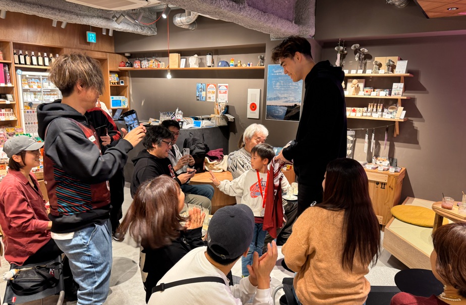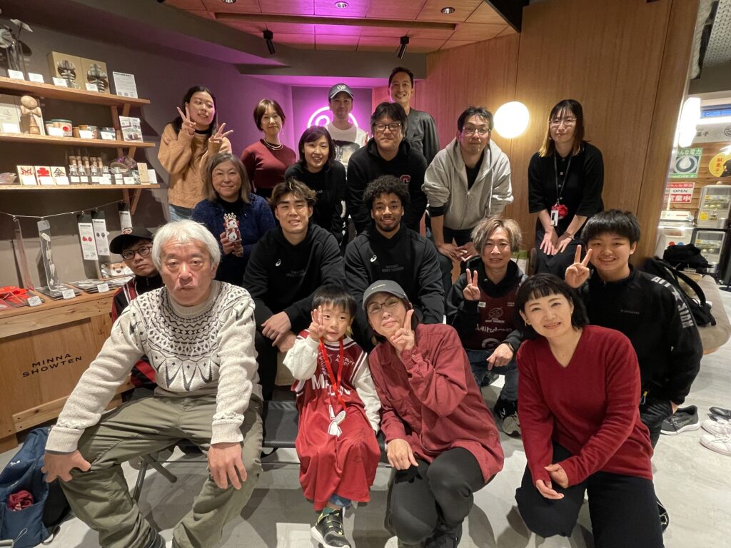 参加者全員の受付が終わり、選手も一仕事を終えて、続いては2階の商店スペースに場所を移して交流会がスタート。