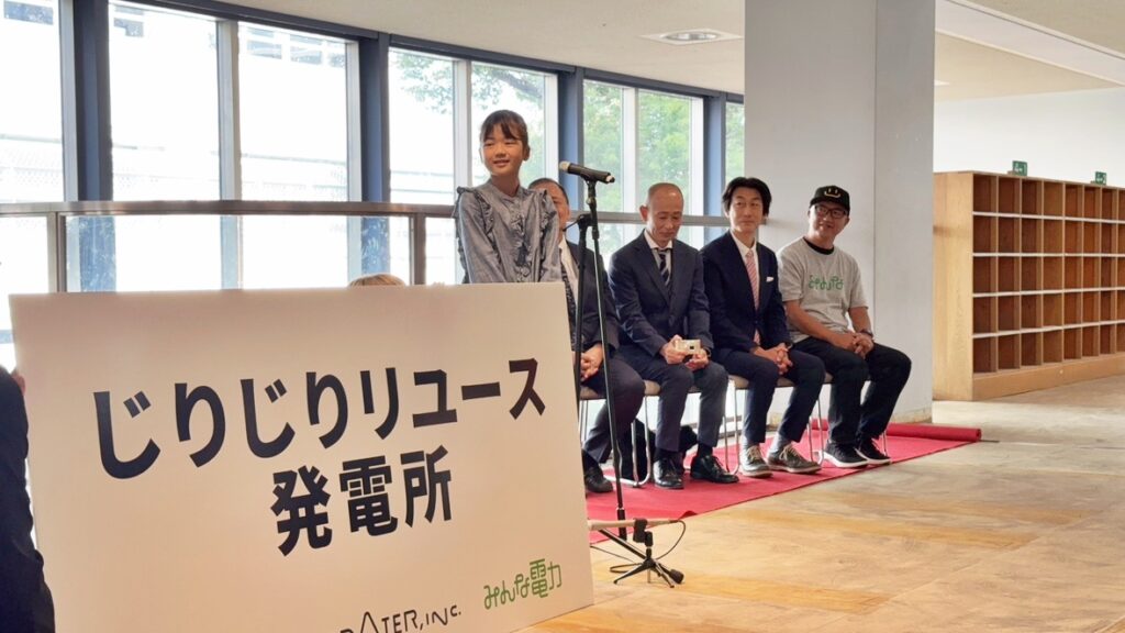 名称は2025年10月8日、「HOME/WORK VILLAGE」で開催された命名セレモニーにて保坂展人世田谷区長より発表されました。式典では、命名者の伊藤さんが「池尻の”じり”と太陽の”じりじり”をかけて名前をつけました」と名称に込めた想いを語り、区長や関係者とともにフォトセッションも実施しました。廃校の屋上に広がる太陽光パネルを背景に、地域に根付く「じりじりリユース発電所」を象徴するシーンとなりました。