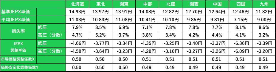 ・JEPX 調整単価=(平均 JEPX 単価-基準 JEPX 単価) /(1-損失率) ×(1+消費税率)
