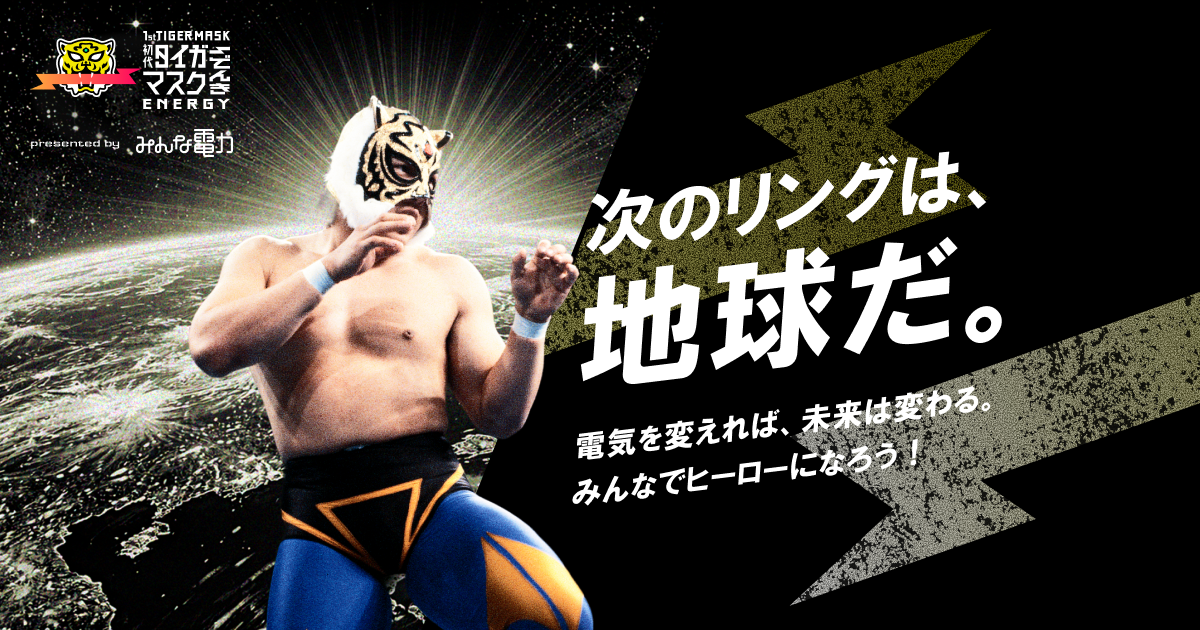 加入方法:「みんな電力」加入後、「初代タイガーマスクプロジェクト」の応援で利用可能プロジェクトページ:https://lp.minden.co.jp/1st-tigermask-energy