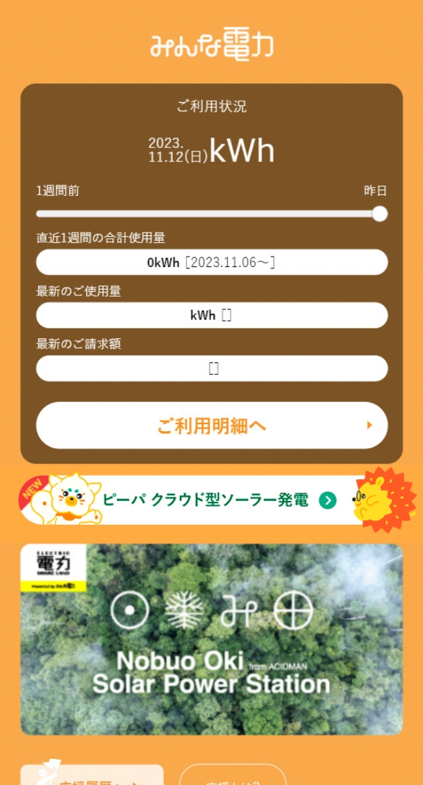 マイページにログインしてピーパ クラウド型ソーラー発電をタップ!