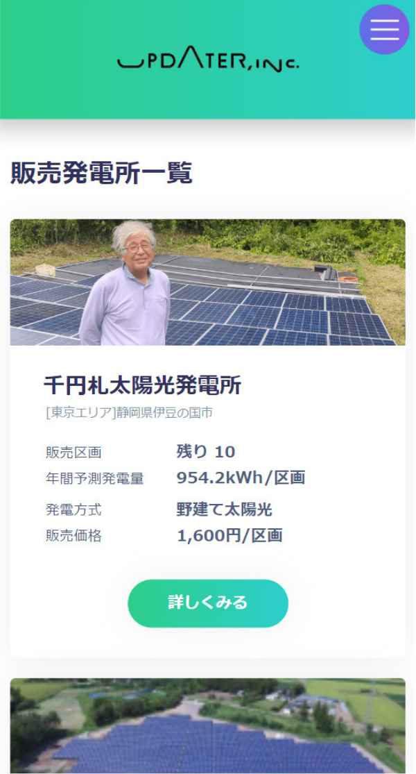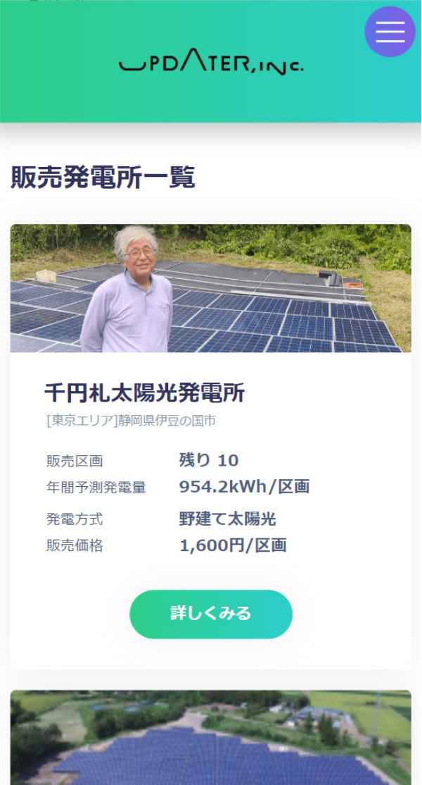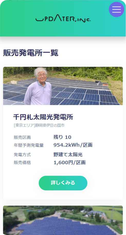 現状では発電原価が比較的安く、開発期間が短い太陽光発電だけですが、将来的には風力など他の電源種別もラインアップに加えていきたいと思います。