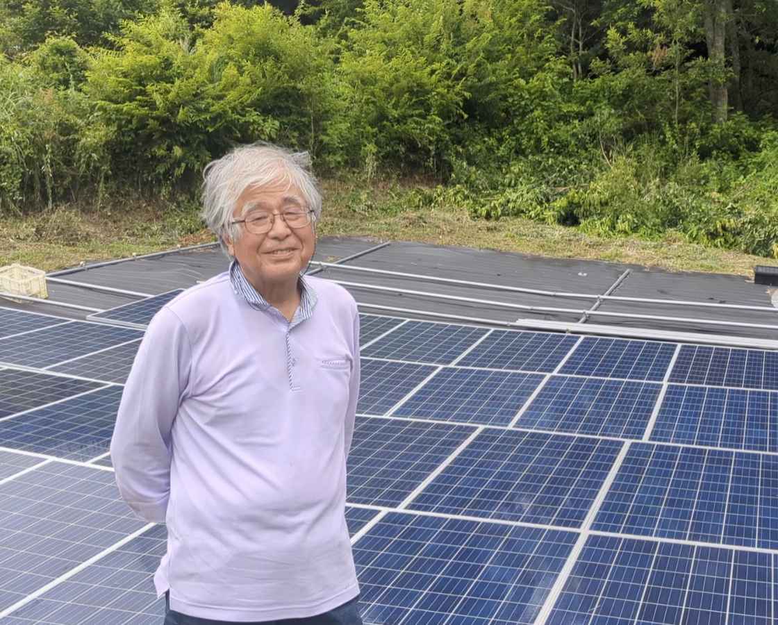 NPO法人「太陽光発電所ネットワーク(PV-Net)」の理事を務めていた伊藤博文さんの発電所。「千円札」は中学時代のあだ名から来ています。